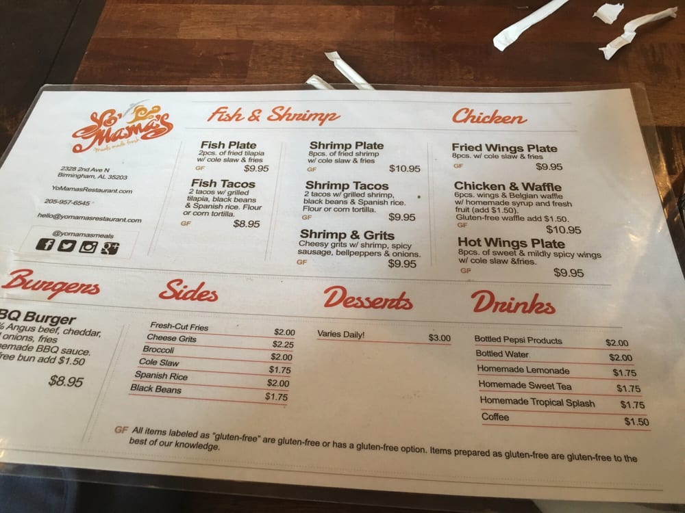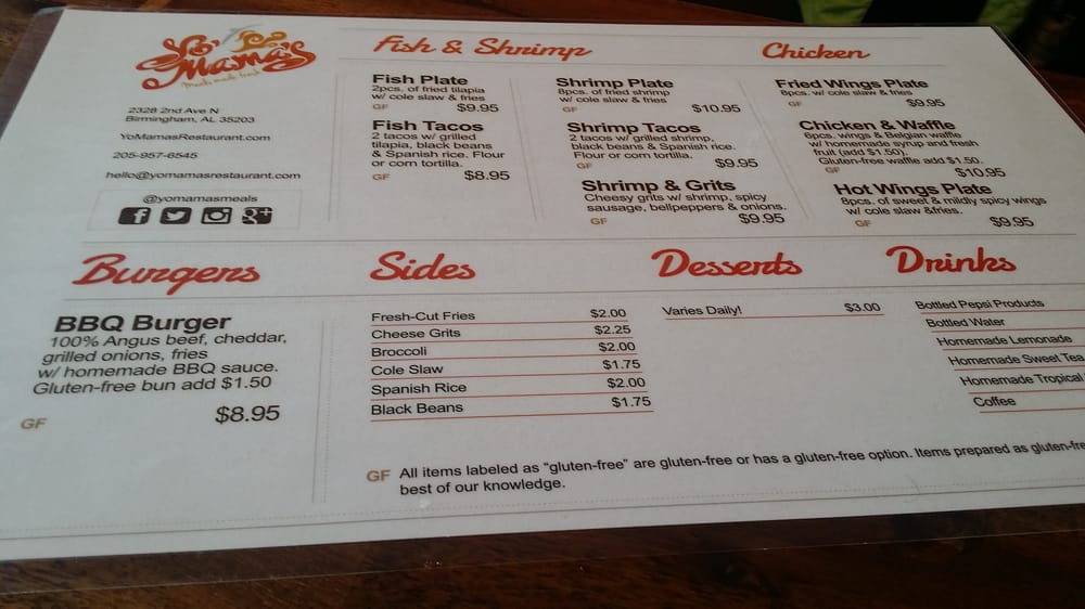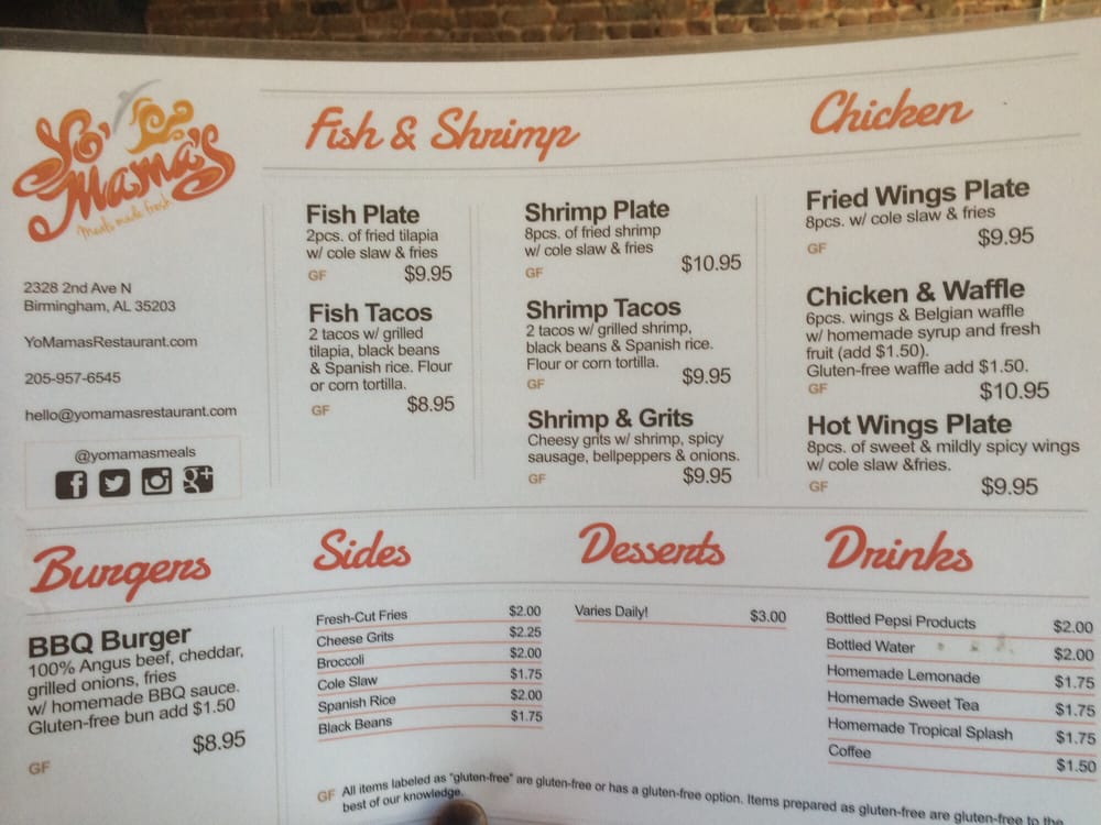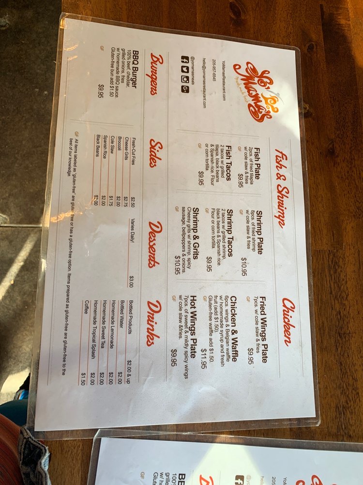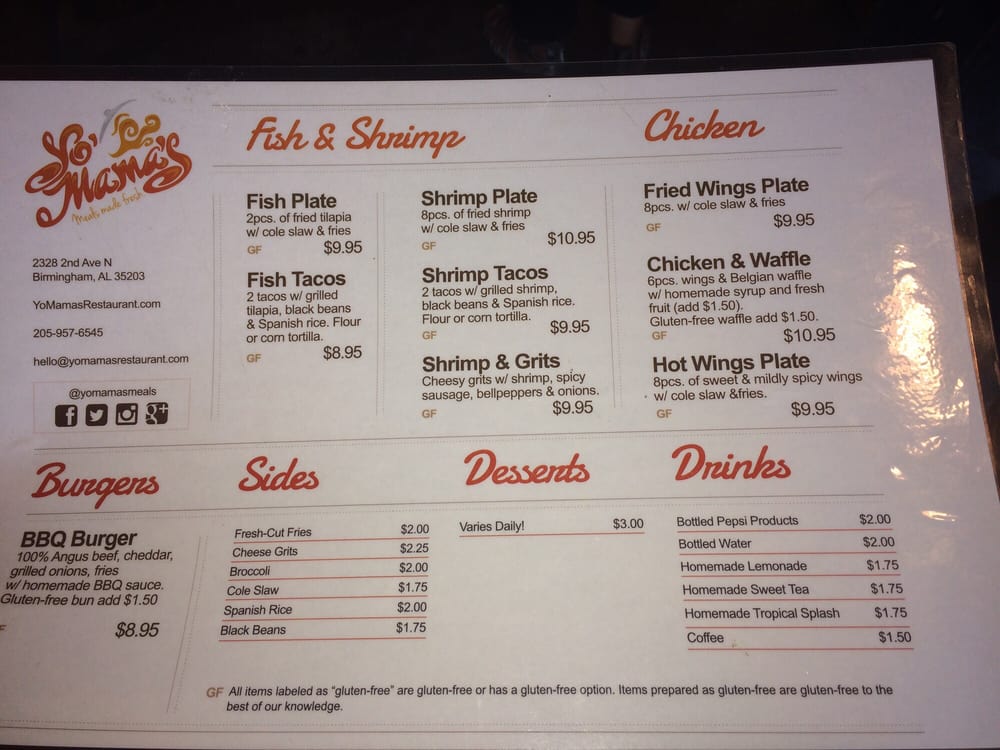 Introducing Yo’ Mama’s: a Black-owned, Women-owned restaurant offering a variety of Southern comfort food with a cozy and friendly ambiance in Birmingham, AL. Known for their Fish Plate, Shrimp & Grits, Hot Wings Plate, Chicken & Waffle, and BBQ Cheeseburger, all with gluten-free options available. Customers rave about the homemade syrup, crispy chicken, and flavorful grits. The staff provides excellent service, treating guests like family, and offering recommendations for first-timers. Yo’ Mama’s is perfect for brunch, lunch, or a quick bite to eat. With street parking available, it's recommended you arrive early due to the restaurant's popularity. Overall, the food is flavorful, fresh, and reminiscent of home-cooked meals, making Yo’ Mama’s a must-visit spot for delicious Southern cuisine.